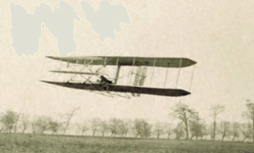 This page shows a computer drawing of the Wright brothers’ 1904 aircraft. This machine was the second powered aircraft built by the brothers. The forces acting on this aircraft are identical to the forces which act on any modern aircraft. Following the successful first flights at Kitty Hawk on December 17, 1903, the brothers returned to Dayton, Ohio. On each of the four flights of that day, the 1903 aircraft exhibited an instability in pitch: the nose, and consequently the entire aircraft, would slowly bounce up and down. On the last flight, hard contact with the ground broke the front elevator support.