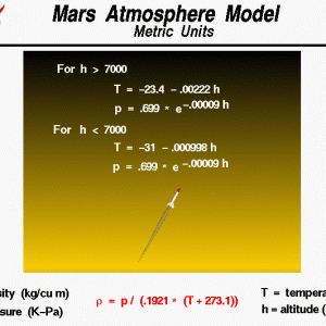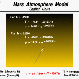 This is an interactive program in which you can investigate changes in the atmosphere and their effects on aerodynamic variables. It uses mathematical models of the standard atmosphere of the Earth and Mars. You can find the equations for the standard Earth atmosphere on this website in both English units and metric units. Similar information is available on the Martian … Read the rest ⇢